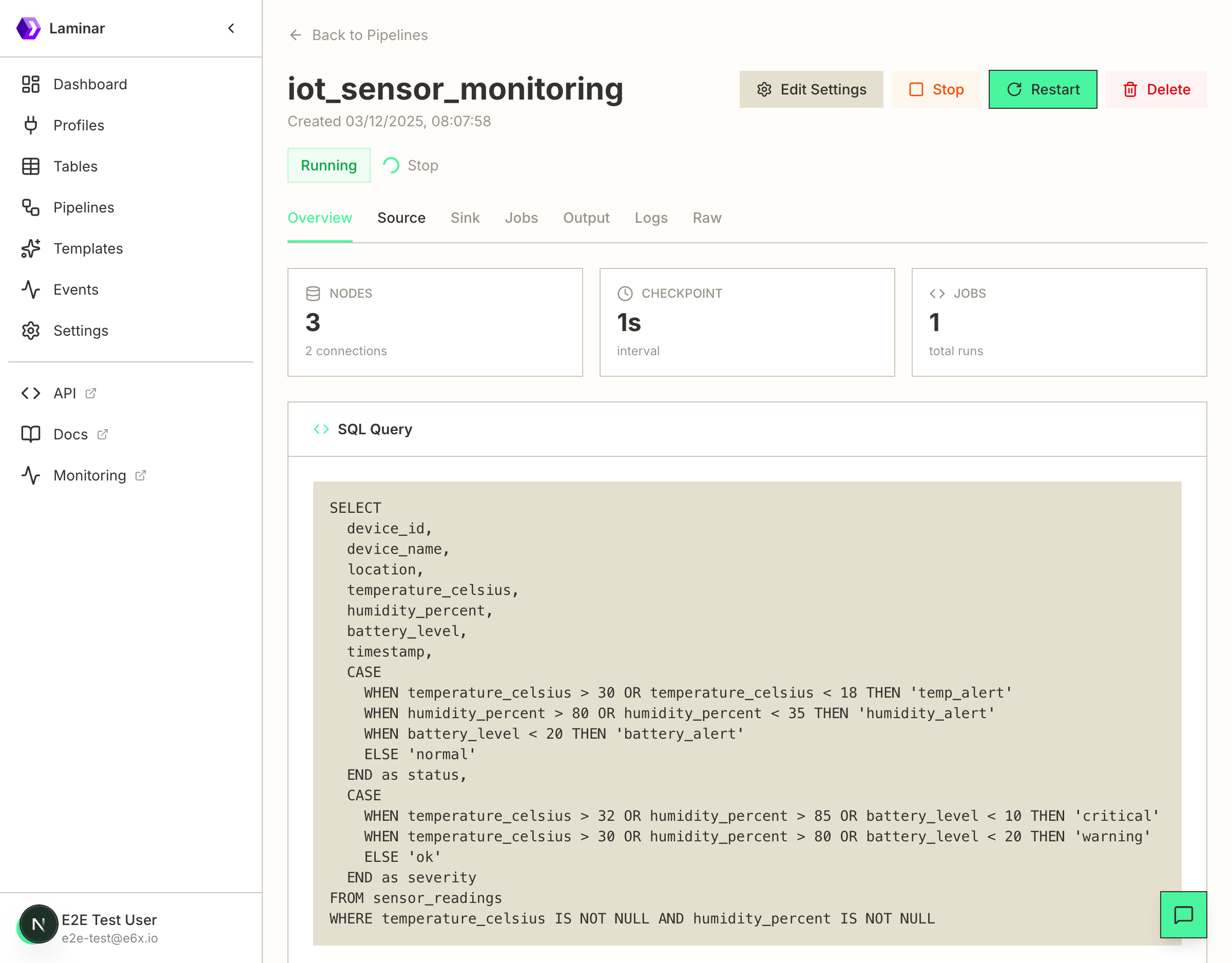 - Sink Profile - The connector type for output data (e.g., preview for testing)