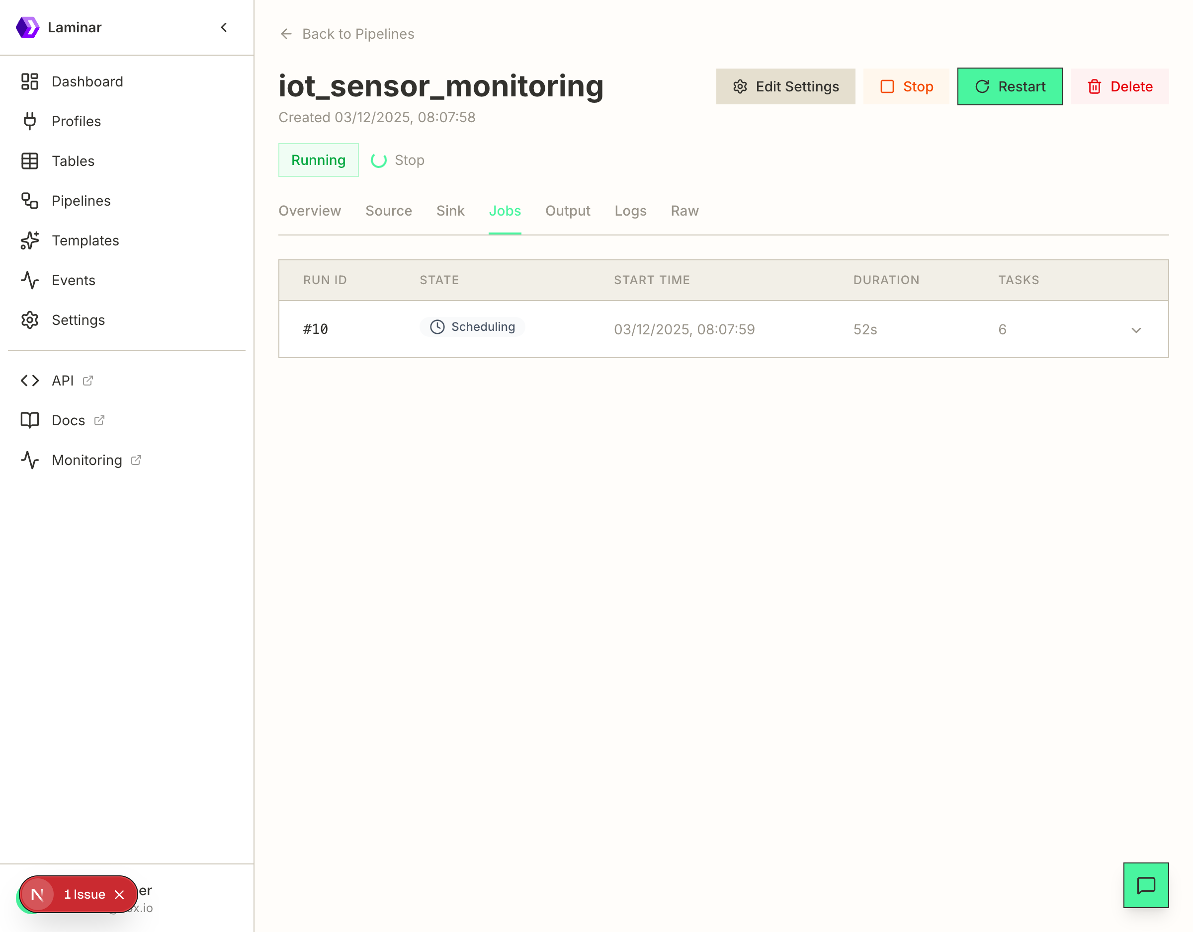 - Pipeline Configuration - Name, SQL query, parallelism, and checkpoint interval